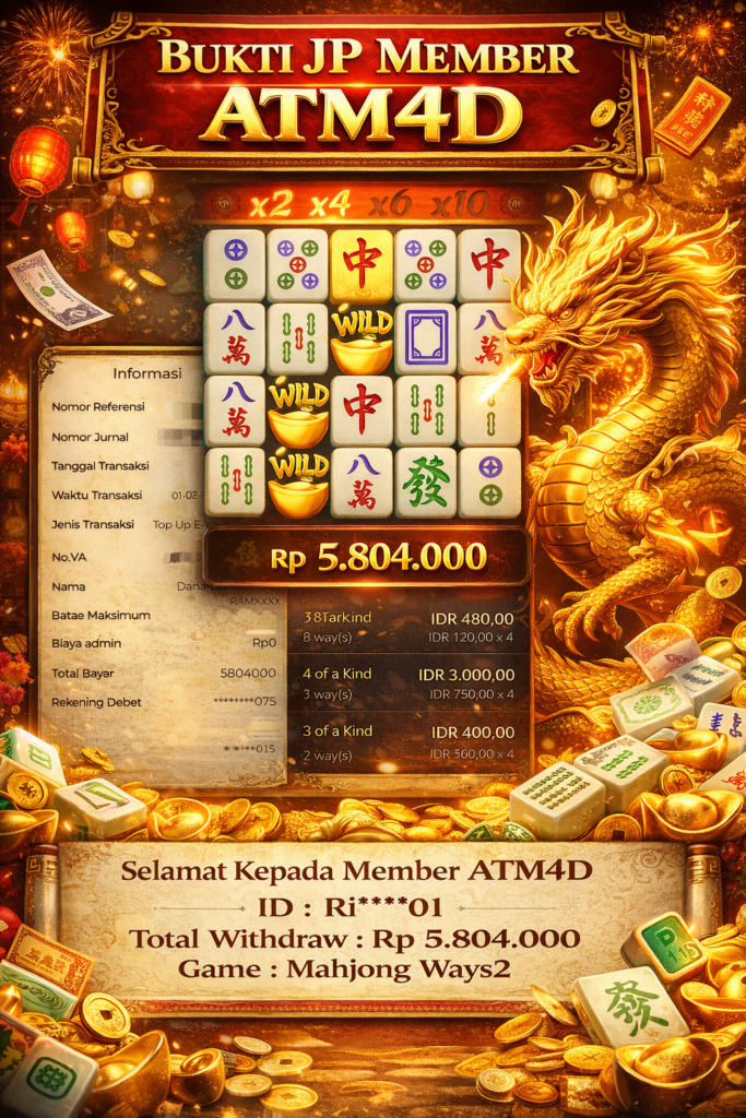 Jangan lewatkan kesempatan untuk meraih kemenangan besar. Daftar sekarang di ATM4D dan rasakan pengalaman bermain slot terbaik yang pernah ada! Putar gulungan, menangkan jackpot, dan jadilah bagian dari komunitas pemain sukses kami!
