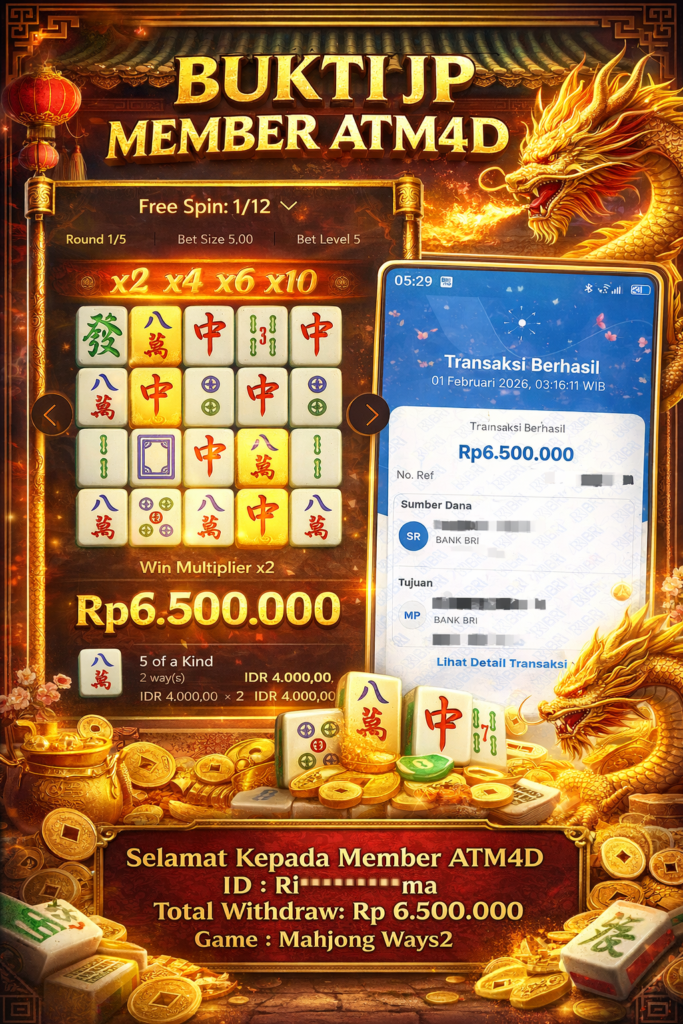 Jangan lewatkan kesempatan untuk meraih kemenangan besar. Daftar sekarang di ATM4D dan rasakan pengalaman bermain slot terbaik yang pernah ada! Putar gulungan, menangkan jackpot, dan jadilah bagian dari komunitas pemain sukses kami!